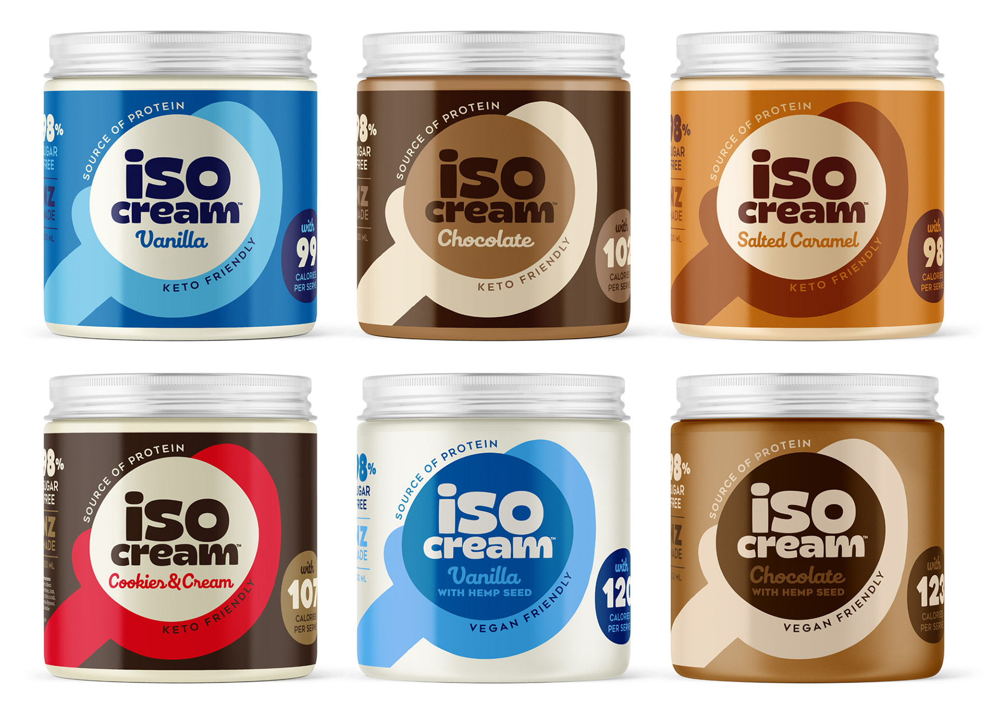 IsoCream make wonderfully healthy Keto and Vegan desserts, but they had a brand and packaging that looked woefully out of date. Their reworked look is a balance of frankness and fun, with an emphasis on health benefits and delicious flavours. This was a quick rebrand project which transformed the products' look on shelves and brought them to new audiences.